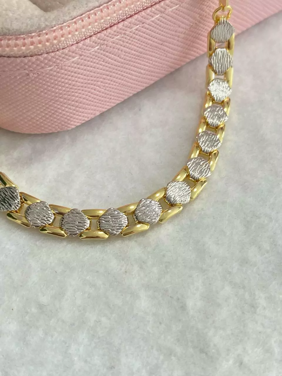 pulseira unissex,toda trabalhada com duas cores folheada a prata.
