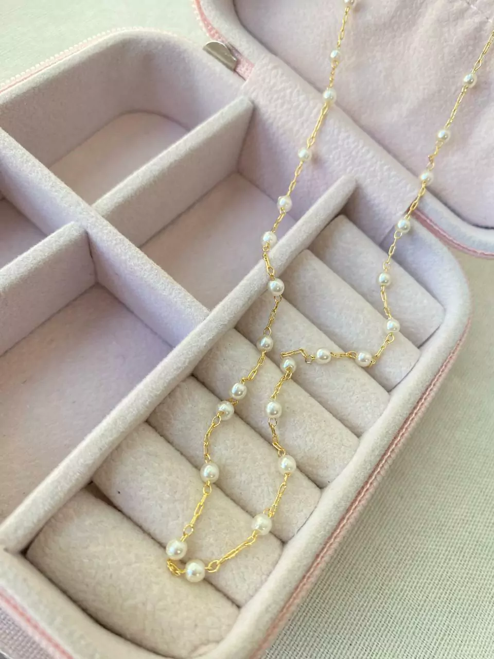 Transforme seu visual com o Colar todo em pérola alternadas! Este acessório clássico é perfeito para quem busca um toque de charme e delicadeza.