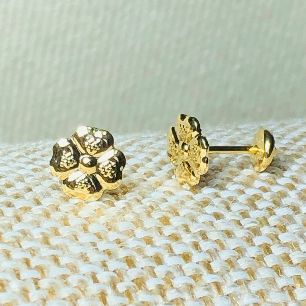 cod 321 Brinco pequeno flor, folheados a ouro 18k. Com um ano de garantia.